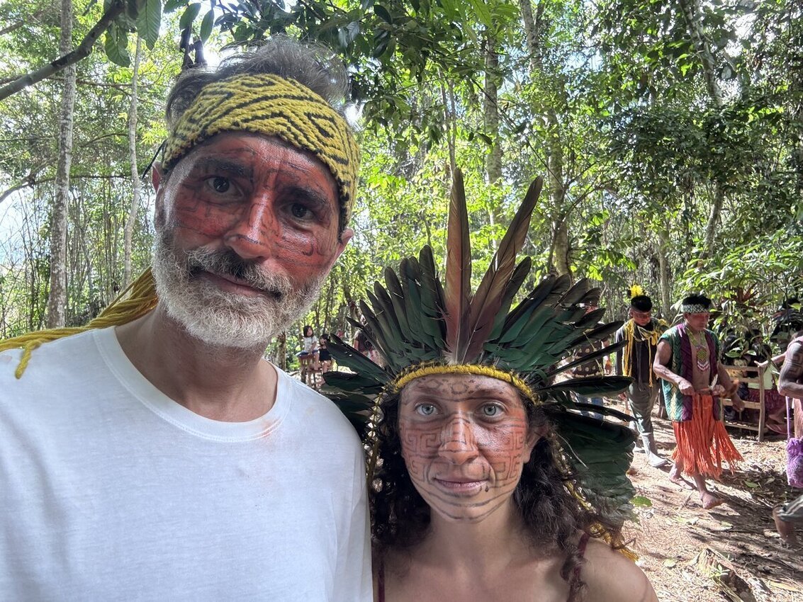 Siamo stati accolti da un popolo di guerrieri e guerriere dal corpo dipinto e con le piume in testa, che indossa abiti coloratissimi, cammina a piedi nudi per la foresta, mangia con le mani, vive in capanne di legno e foglie di palma, si nutre di banane, manioca e di tutto quello che riesce a cacciare o pescare, un popolo che suona, canta e danza tutto il giorno, pieno di bambini capaci di arrampicarsi su alberi altissimi e che è guidato in tutte le sfide quotidiane dal motto Sò alegria ("solo allegria").