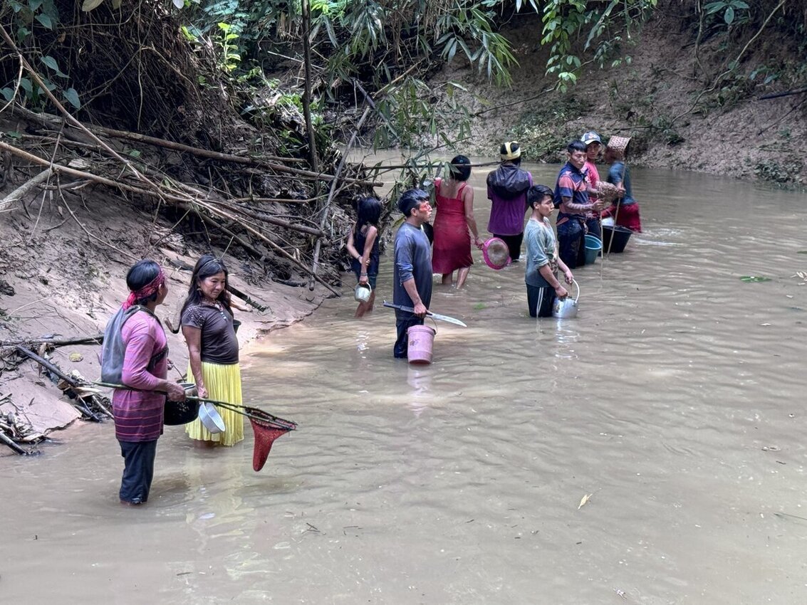 Nel 2024 e nel 2025 abbiamo visitato la Terra Indigena Praia di Carapanã, lungo il fiume Tarauacá, stabilendo un'alleanza con il villaggio Povo Junto ("popolo unito"), abitato da circa 110 persone, metà delle quali bambini.
